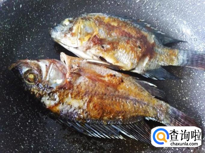 再煎5分钟左右,把鱼两面煎得金黄色铲上碟子。