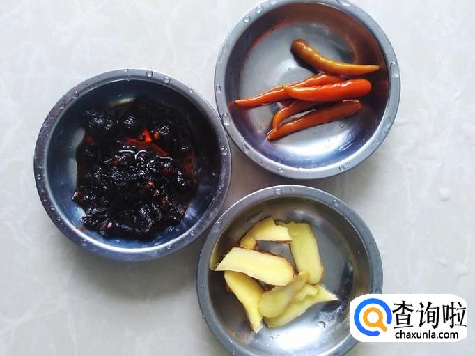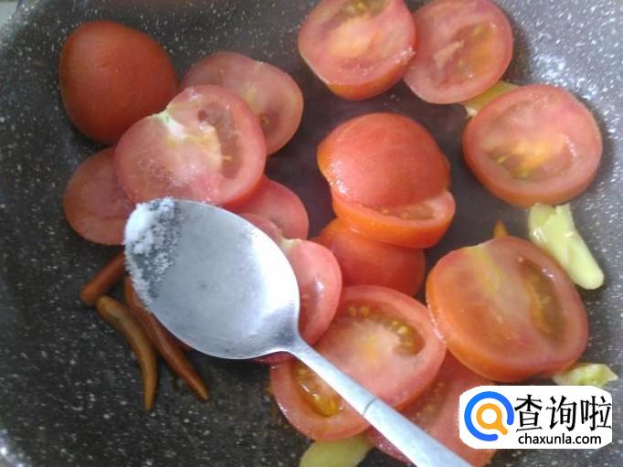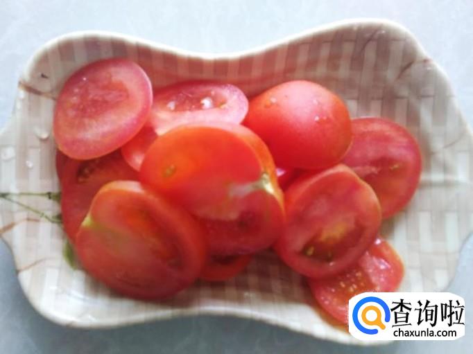 番茄切成片,姜片、小米辣、老干妈酱准备好。
