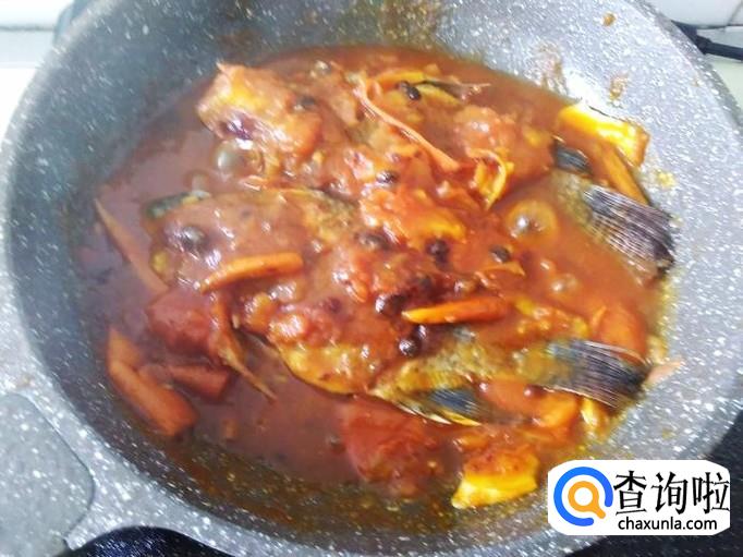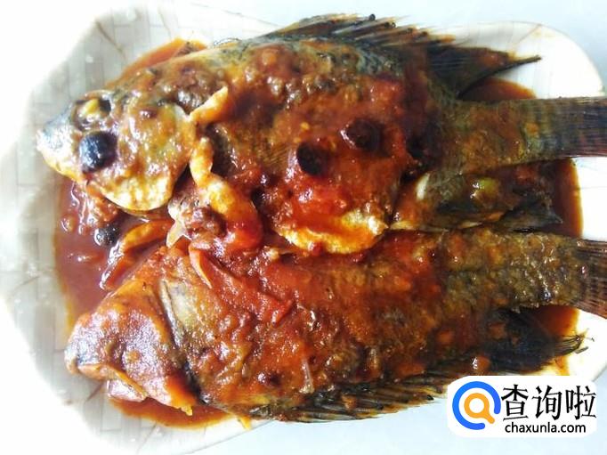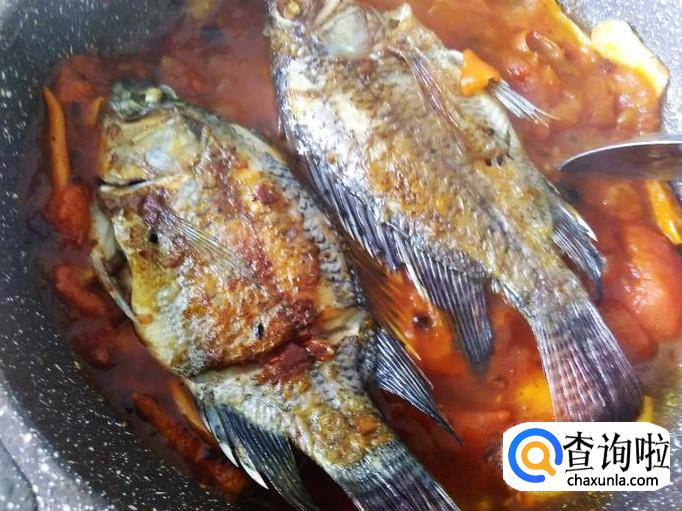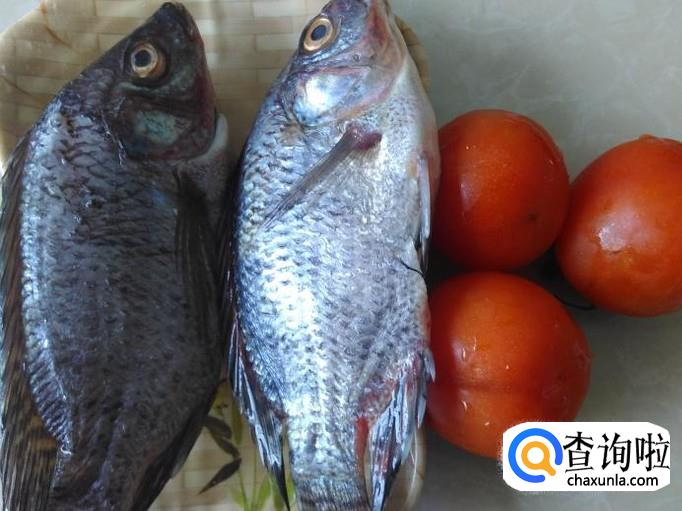 罗非鱼2条,番茄3个,小米辣、姜片适量,1勺老干妈酱,2勺生抽。