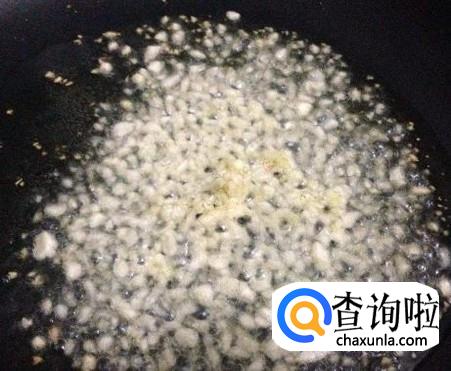 锅中放入适量的食用油,油烧热后,放入蒜末炝出香味。