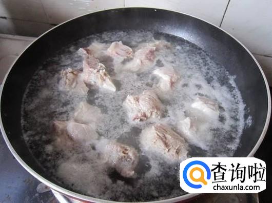 我们需要用清水把排骨清洗干净,然后放入锅里面焯掉血水,去除腥味我们可以加入一些姜片或者料酒。