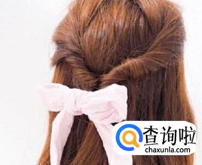 从两侧各抓一缕头发,边拧边聚拢到中间,用一条丝带扎成蝴蝶结,这种扎法,简单又漂亮,年轻女孩特别适合这么扎。