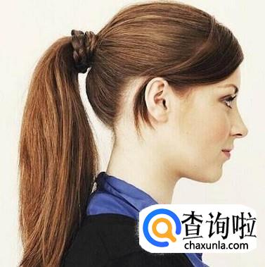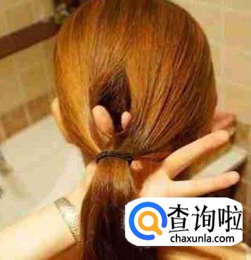先把头发聚拢在脑后,用皮筋束一下,然后两个手指伸进头发下面,从头发中间伸出来,把下面的马尾带上去,从孔中穿下去,就看不到皮筋了,这种扎法简单又好看。