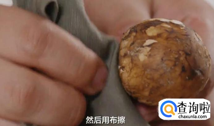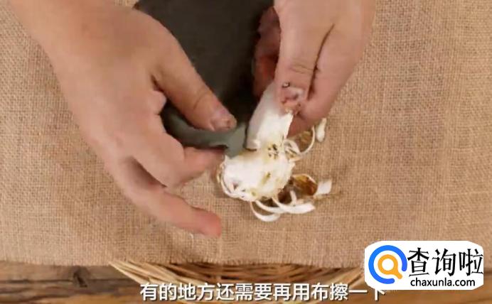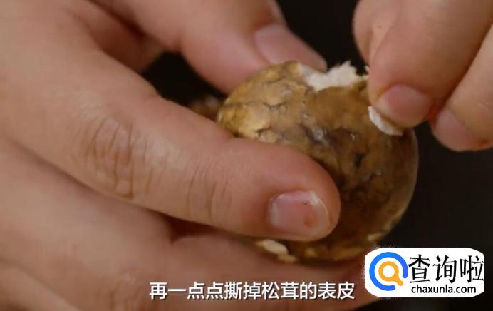 再一点点撕掉松茸的表皮。