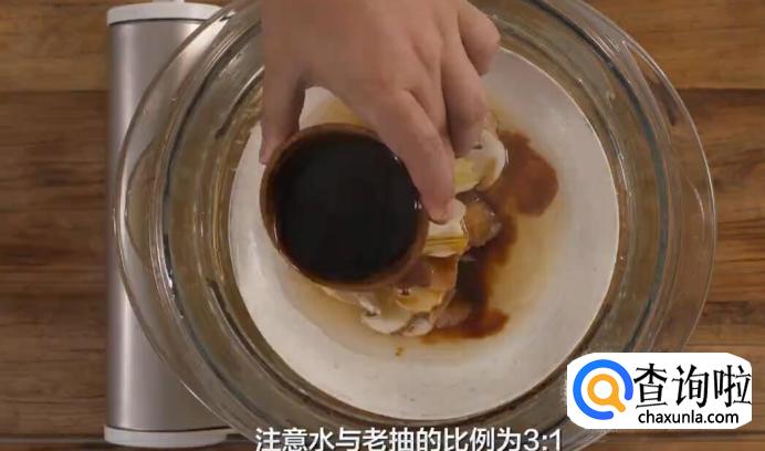 再淋一点用水稀释过的老抽,注意水和老抽的比列为3:1。
