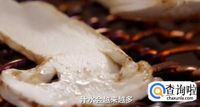 3、烤松茸的时候,尽量把松茸切厚一点,或者一分为二也可以。