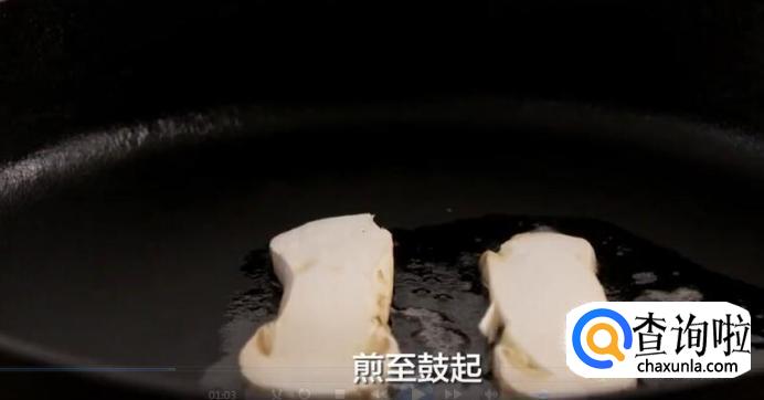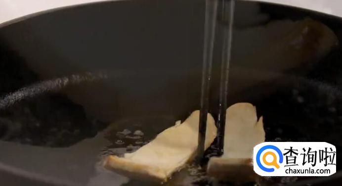 松茸煎至鼓起,即可翻面。