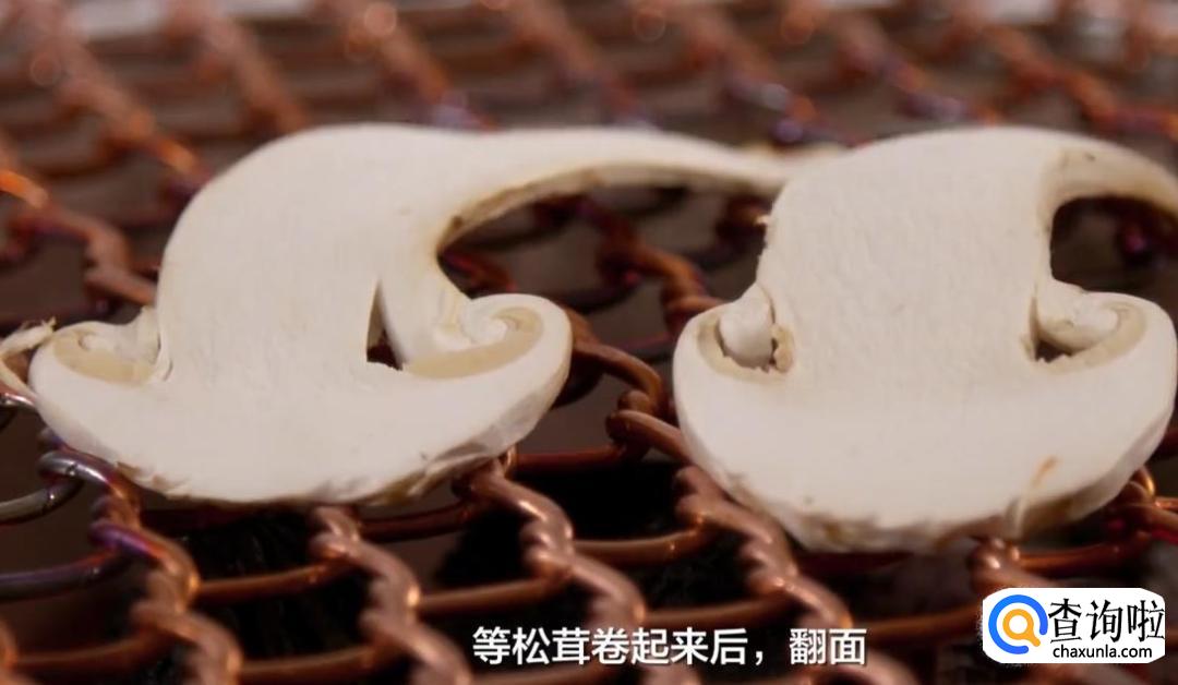 等松茸卷起来后翻面。