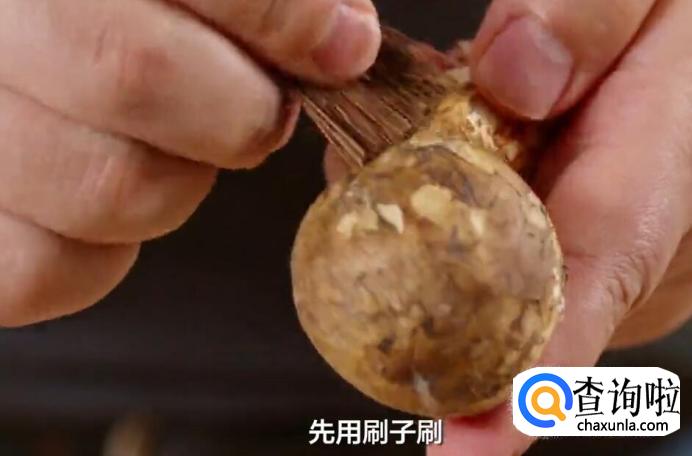 烹饪之前,需要清理一下松茸表面的泥土。先用刷子刷。