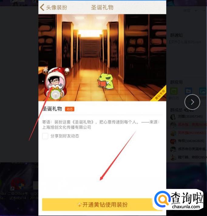 点击这个装扮就可以预览效果,如果你是黄钻用户,直接保存设置即可。