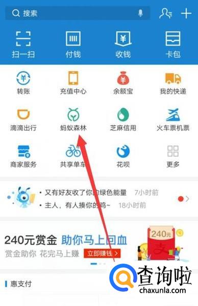 进入之后,点击蚂蚁森林,进入下一页面,如图所示。