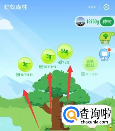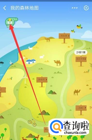 进入之后,收取图示位置的能量将大树养大即可获得证书,如图所示。