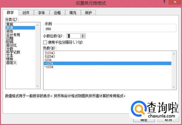 在弹出的对话框中,找到“数值”,并将其”小数位数“设置为“0”