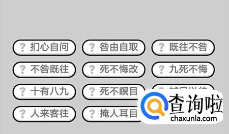第393关:扪心自问、咎由自取、既往不咎、不咎既往、死不悔改、九死不悔、十有八九、死不瞑目、拭目以待、人来客往、掩人耳目。