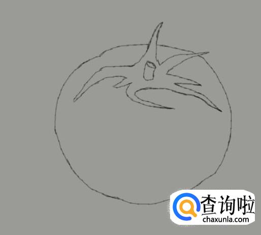 在果荚和果把的基础上再画出西红柿的果实体,如图所示: