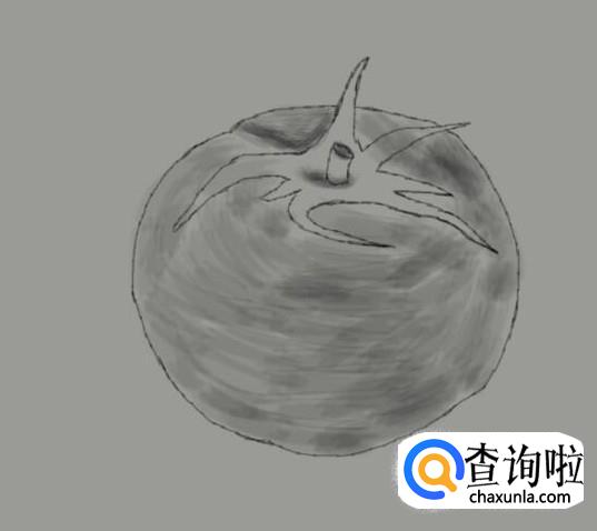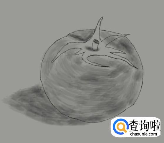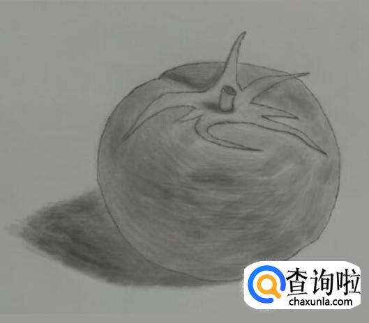最后我们对西红柿的整体进行调整,让其明暗过渡更加自然,这样素描西红柿就画好了如图所示: