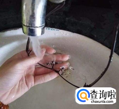 通过洗洁精清洗后,眼镜表面已经很干净了,最后用自来水冲掉镜片上的泡沫,把整个眼镜冲洗干净。