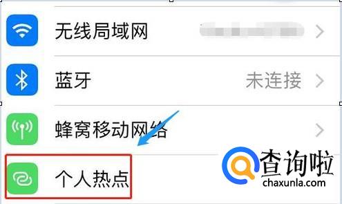 进入到设置页面以后,找到“个人热点”这一项,何为热点呢?其实就是把自己的手机移动流量变成一个WiFi,然后别的设备搜索并且连接上这个WiFi就能上网了;
