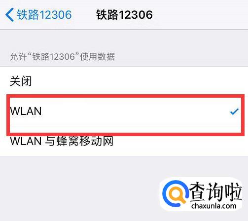 选中仅支持wifi局域网即可,再次试一下12306操作就OK了。