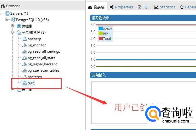 上述设置完毕以后回到数据库主界面,我们就可以看到"登录/组角色"下面就已经有我们新建的登录用户了,如下图所示