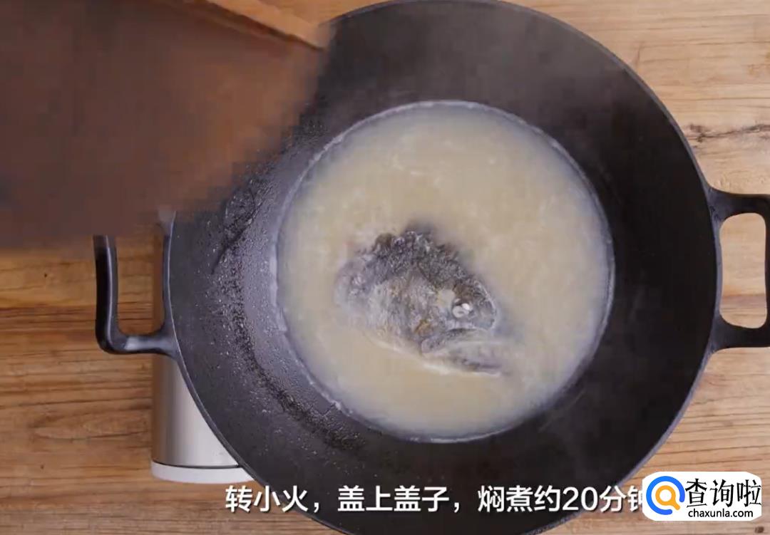 鱼头汤较浓的时候放入小块的嫩豆腐,煮2-3分钟关火,起锅后撒上一些葱花即可。