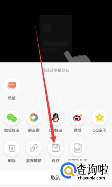 发布成功之后,进入自己拍摄的视频页面,点击图示位置。