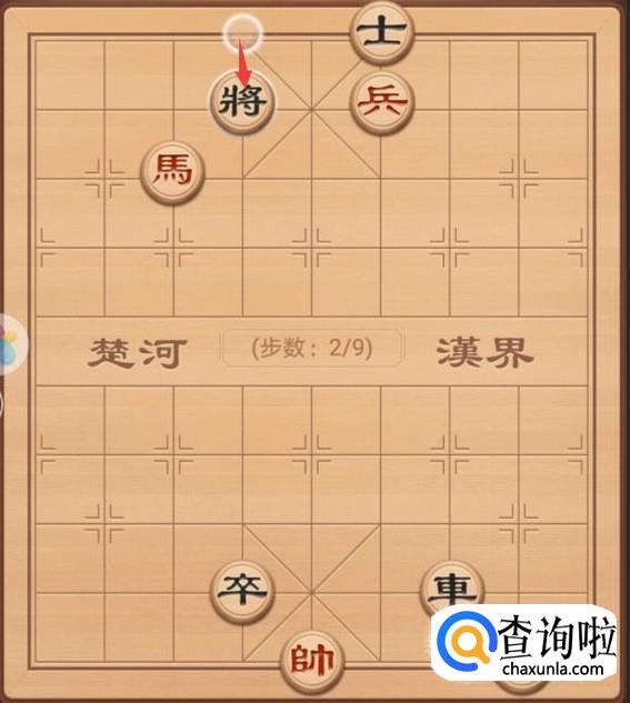 红方接着第二步走法也是需要进行将军的,这里将军就是兵左走一步,进行兵将军,如图所示。