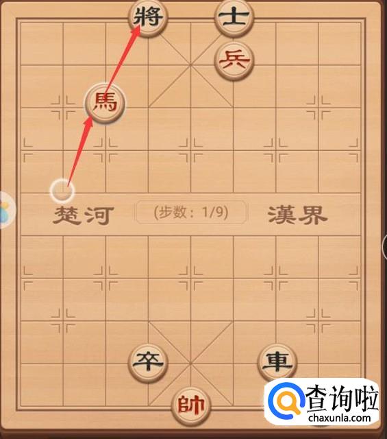 接着这里的话,我们作为红方,先来走红方的第一步,就是需要进行将军,否则就是死局,第一步,红方就是直接跳马将军,如图所示。