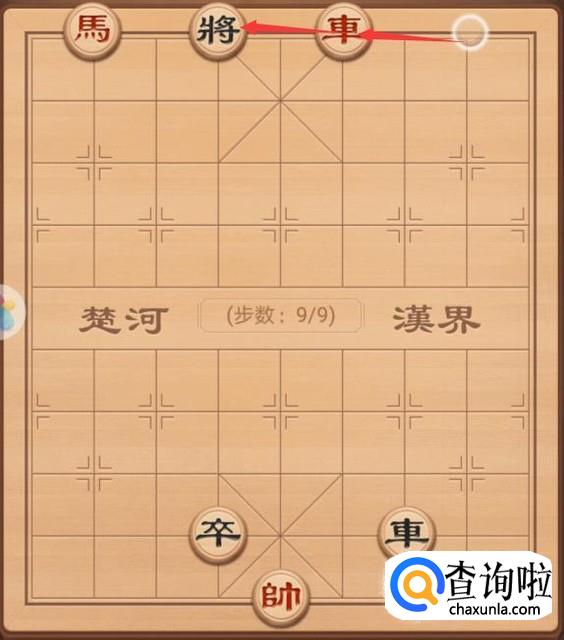 红方这里继续将军,这里红方就是车上走9步,进行车将军,如图所示。