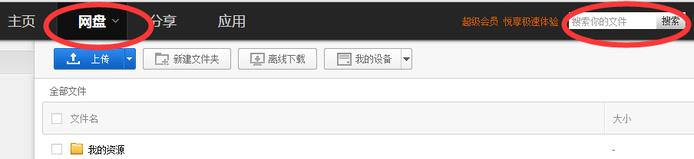 登录百度云后,在网盘栏目中可以看到百度一下的搜索框,这个搜索框只是用来搜索自己的资源和内容的,并不能全网搜索资源。