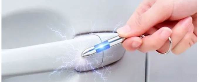 4、为避免静电击打,可用小金属器件(如钥匙)、棉抹布等先碰触大门、门把、水龙头、椅背、床栏等消除静电,再用手触及。