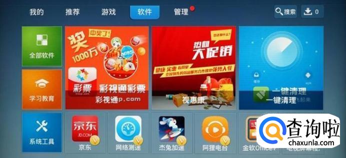 或是想手动通过U盘安装TV软件,可在我的应用中搜索应用管家