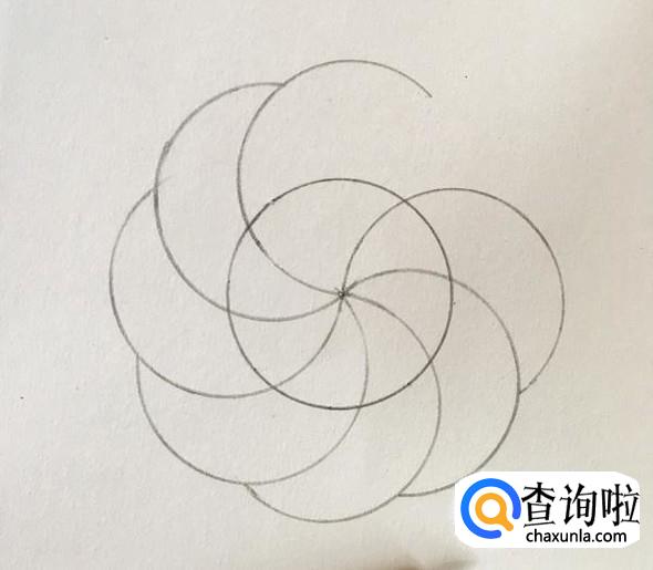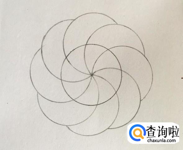 画完所有弧线后,我们可以看到一个好看的图案,由中间一个圆形和周围八道弧线组成。