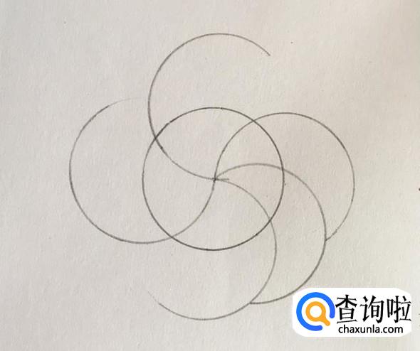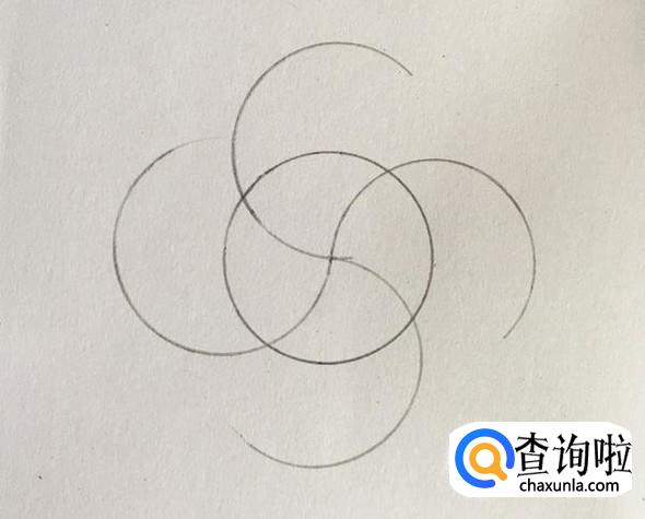 画出第四道弧线,注意这四条弧线把中间的圆四等分了。