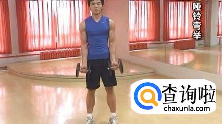 方法:两手各握一哑铃,双臂自然下垂,保持上臂不动,双手弯举哑铃,重复。