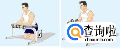 方法:手心向上握住哑铃,凭借手背的力量弯举哑铃。缓慢还原,感受肌肉的发力。注意前臂不要离开板凳。