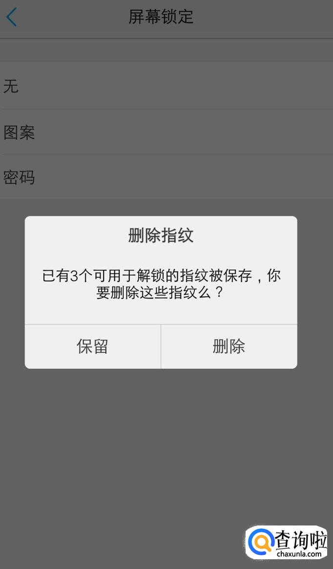 手机现在是有密码的状态,怎么修改呢?点击“屏幕锁定”处进入改为“无”,退出再进入点击“屏幕锁定-密码”就会出现是否删除指纹,确定删除。