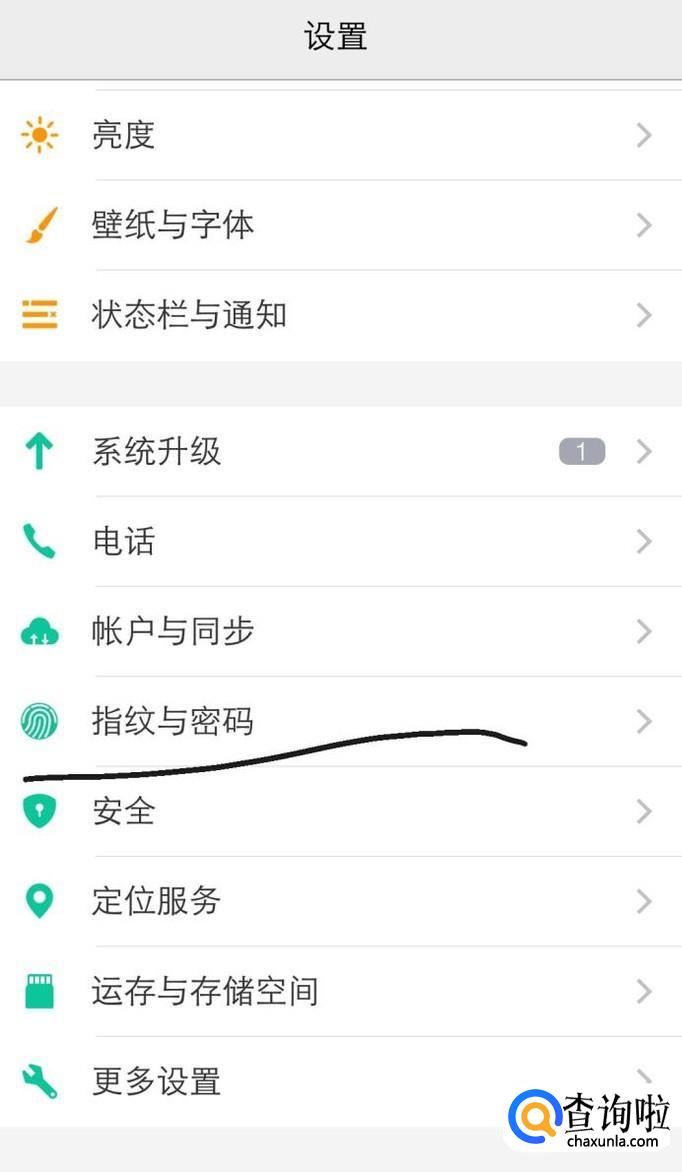 进入设置界面,可以看到“指纹与密码”,点击进入。