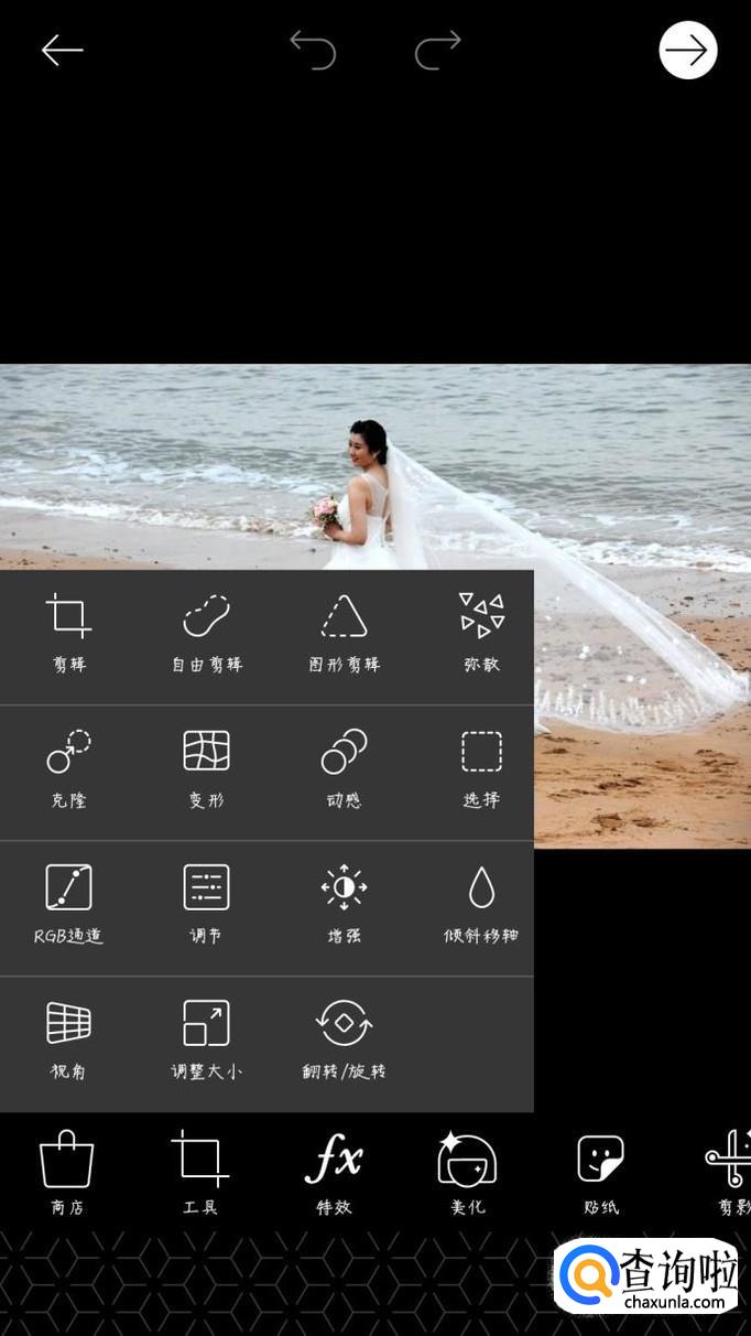 选择下方工具栏中的工具,选择克隆,出现下图所示的列表,第一个选取工具,类似于ps中的仿制图章的源,第二个画笔,将选取工具选取的范围进行涂抹,遮盖需要清除的部分,第三个橡皮擦,擦掉多涂抹的地方,第四个清除,推翻重做