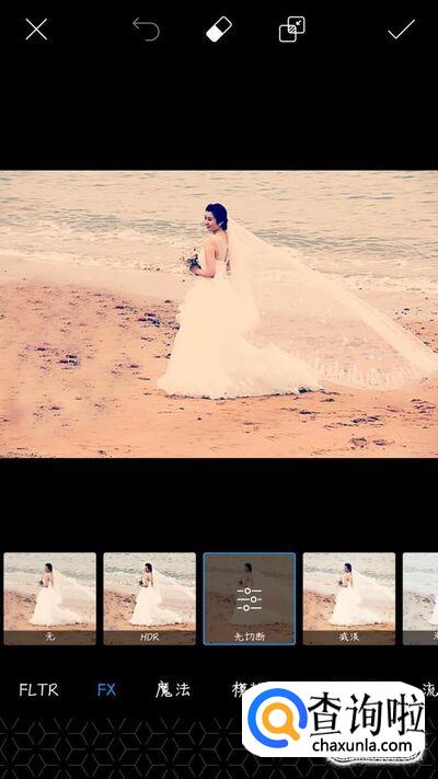 最后进行细节调整,选择工具里的特效,选择一种效果,这样就完成了对多余物体的清除。在克隆的涂抹的时候,越精细做出的照片就越自然