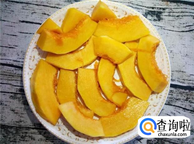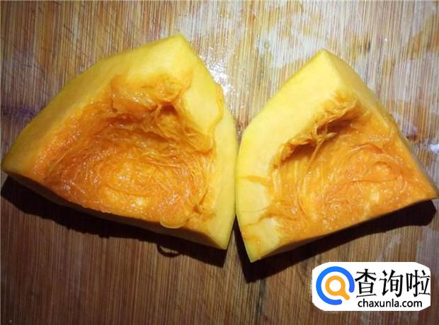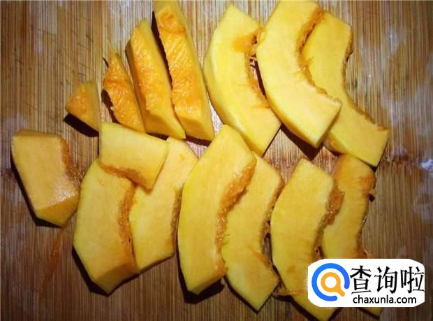 南瓜去掉瓜囊,去掉皮,清洗干净,切成小块,备用。