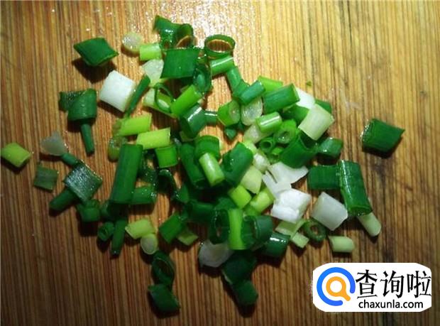在蒸排骨的过程中,把香葱清洗干净,切成葱末,备用。