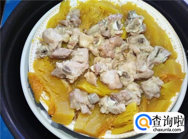 大概蒸20分钟,排骨就已经蒸熟了,南瓜也变得很软了。