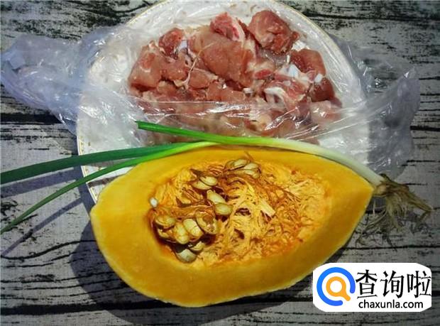 南瓜、排骨、香葱、花生油、酱油、盐