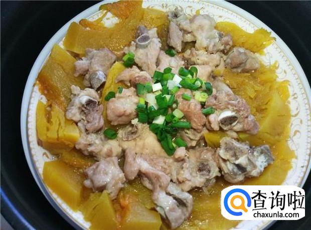 撒上葱花,即可享受美味清甜的南瓜排骨了,这样蒸出来的南瓜很软,小孩子们都争着吃呢。