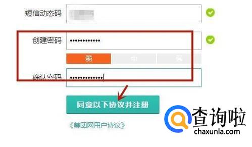最后连续两次输入你的密码并点击同意以下协议并注册就可以了。