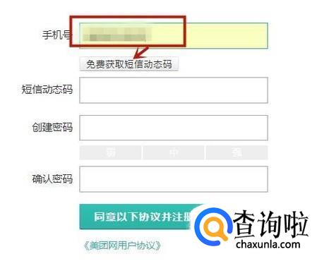然后输入你的手机号码并点击免费获取短信动态码,如下图所示。