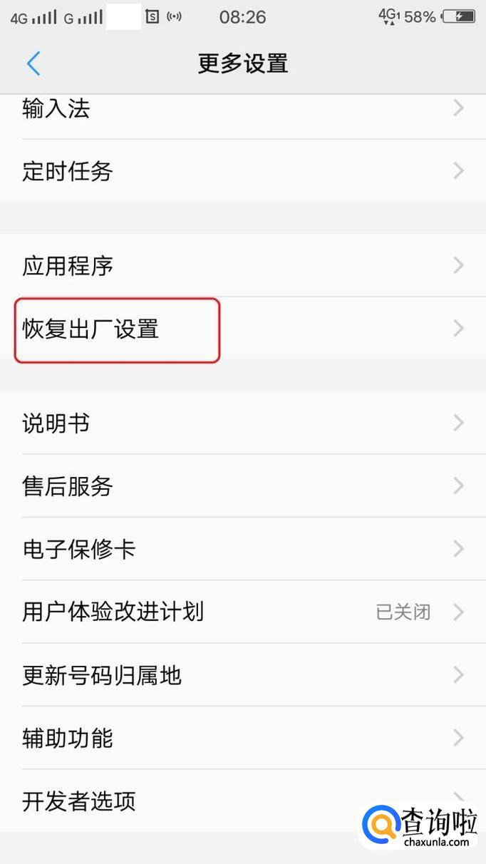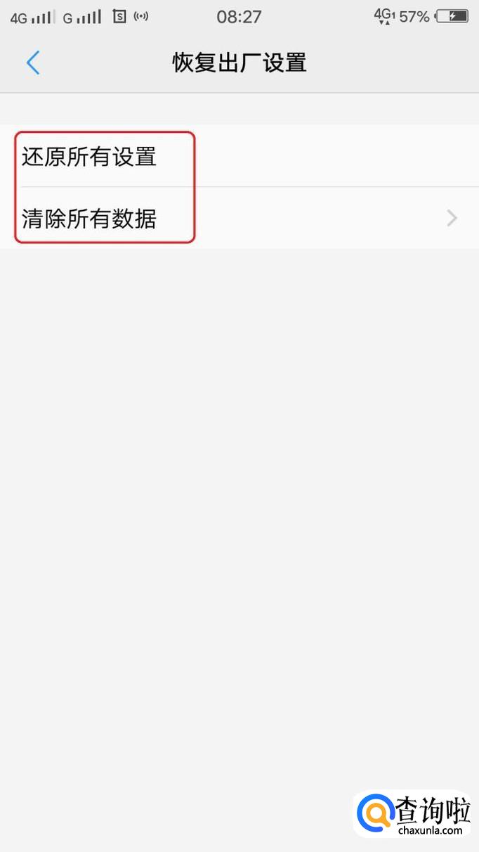 如果不能解决问题,我们就打开手机设置,然后在其中找到“恢复出厂设置”,点击“还原所有设置”或者“清除所有数据”,手机就会回复到初始正常状态。