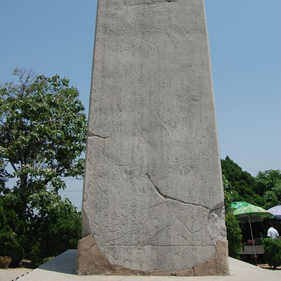 乾陵无字碑,为武则天所立。位于陕西省咸阳市区西北方五十公里处的乾陵,在乾陵司马道东侧,北靠土阙,南依翁仲,西与述圣纪碑相对,奇崛瑰丽,巍峨壮观。
