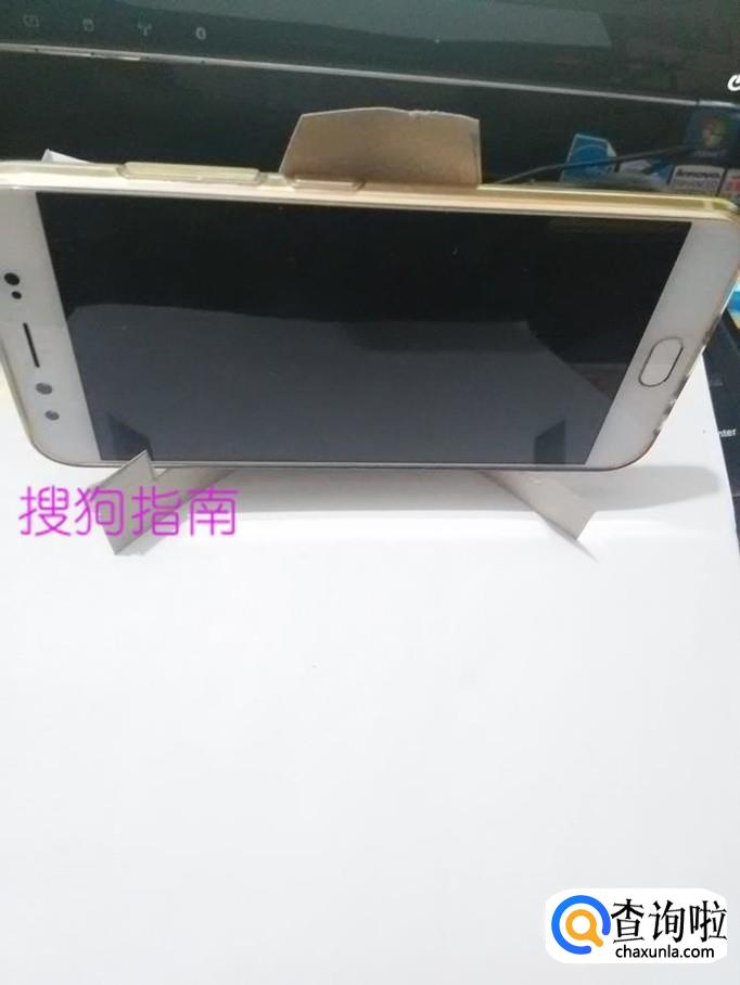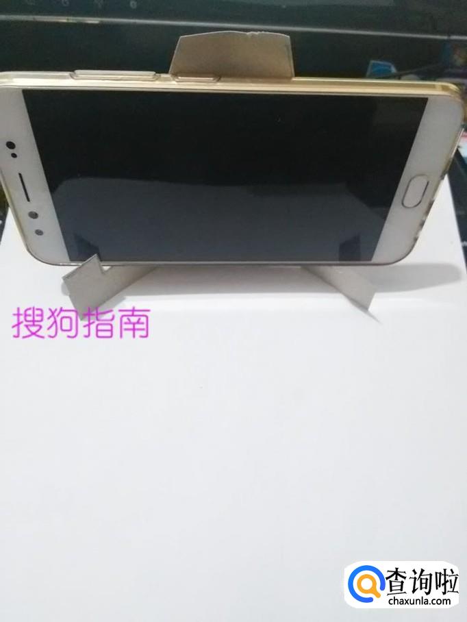 把剪好的纸板儿稍微对折一下,将手机放在支架上,手机架就做完了。